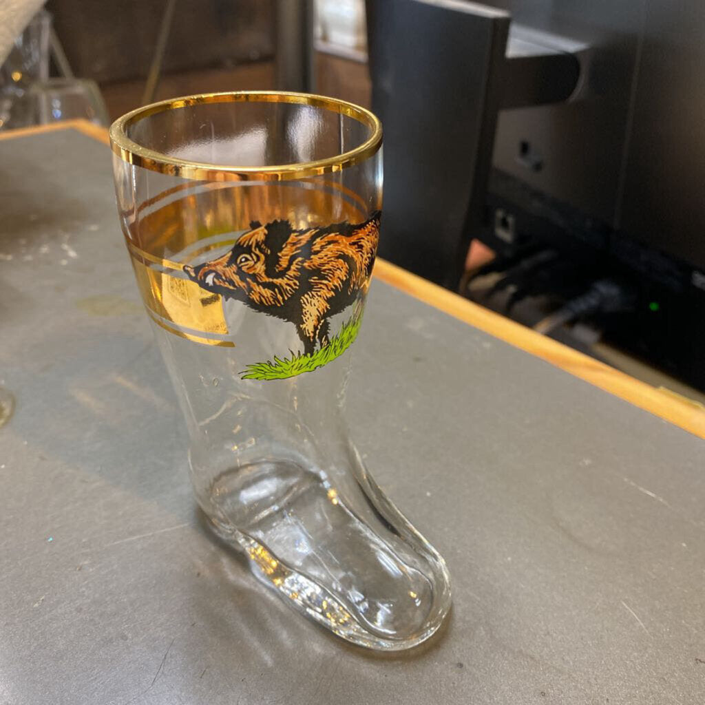 Vtg Ruhrglas Wild Boar Boot Glass