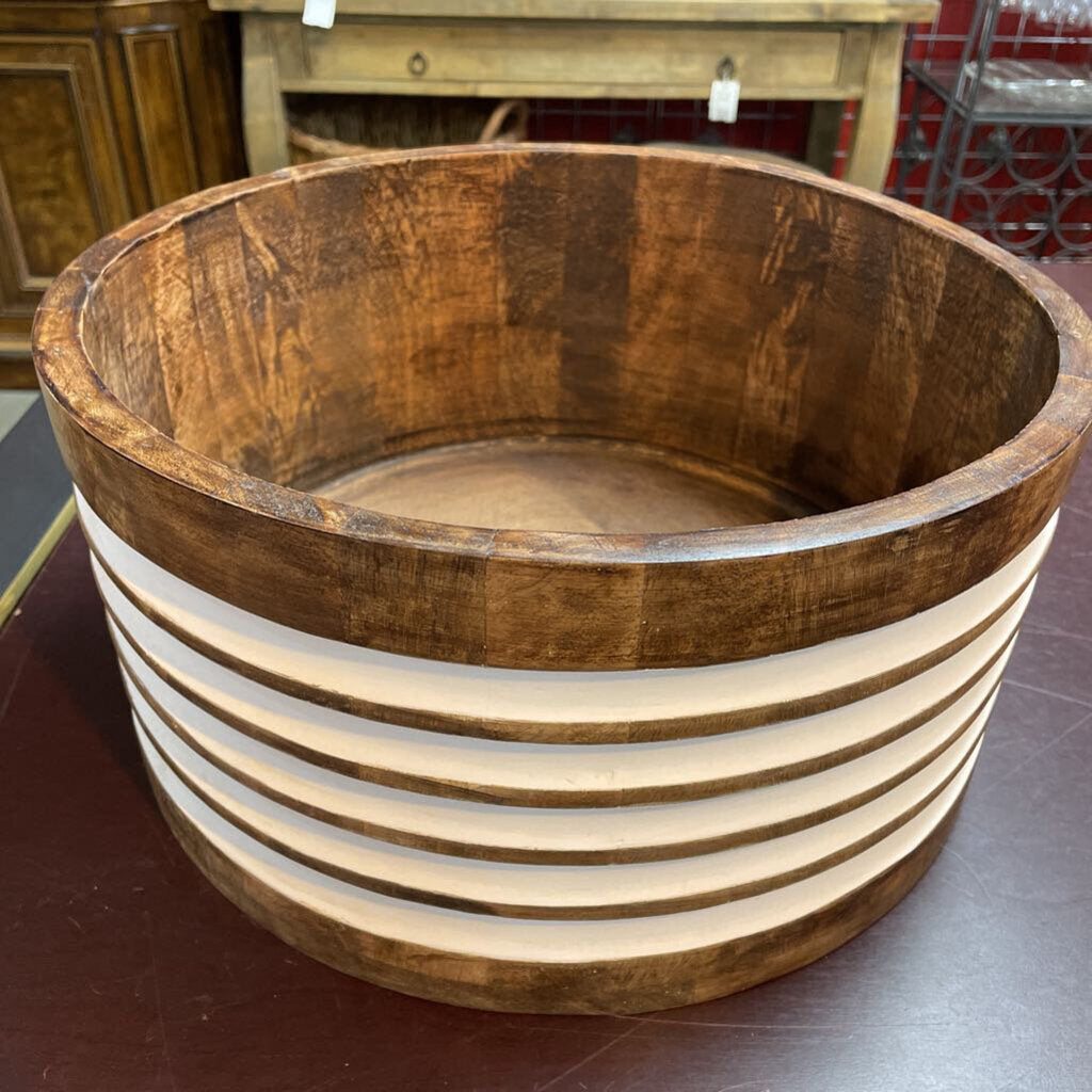 White Striped Mango Wood Salad Bowls
