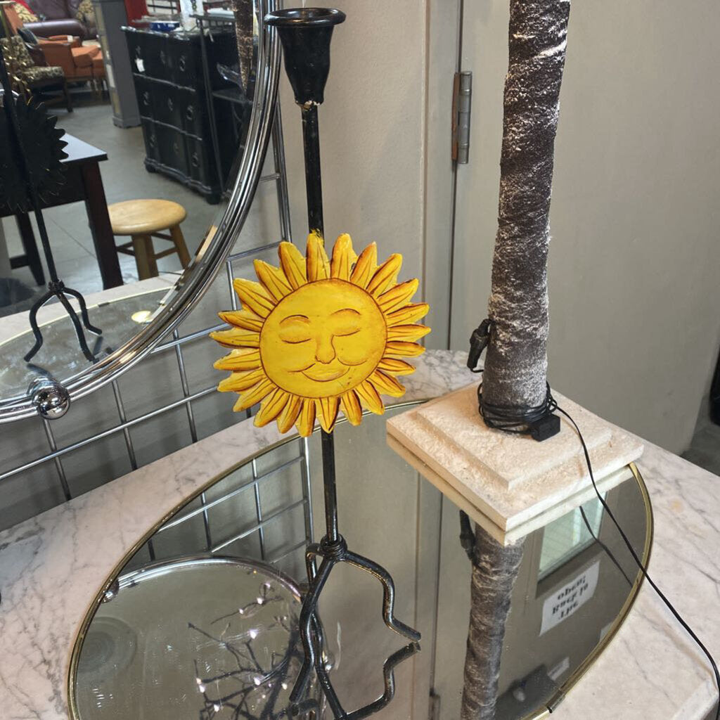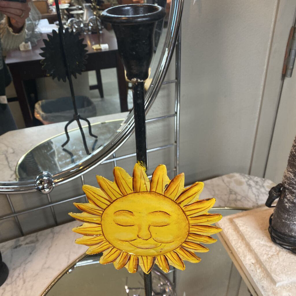 Metal Candle Stick Holder w Yellow Sun Face